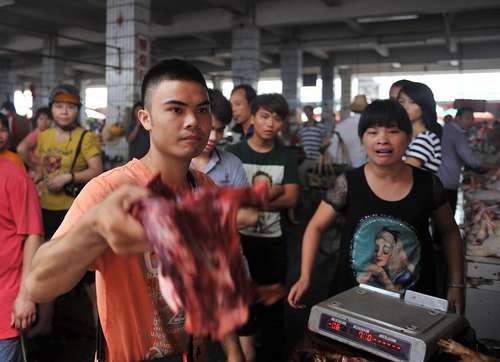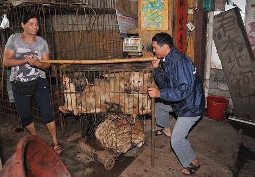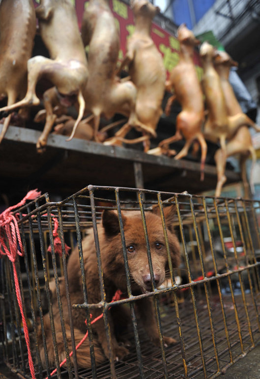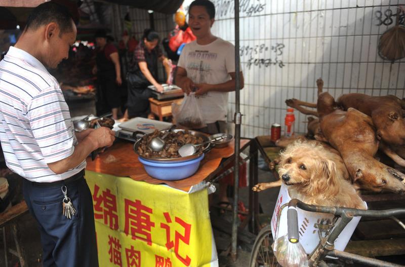 dans la communauté , un marché de viande de chiens toute fraiche et