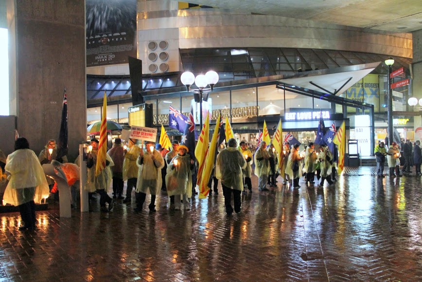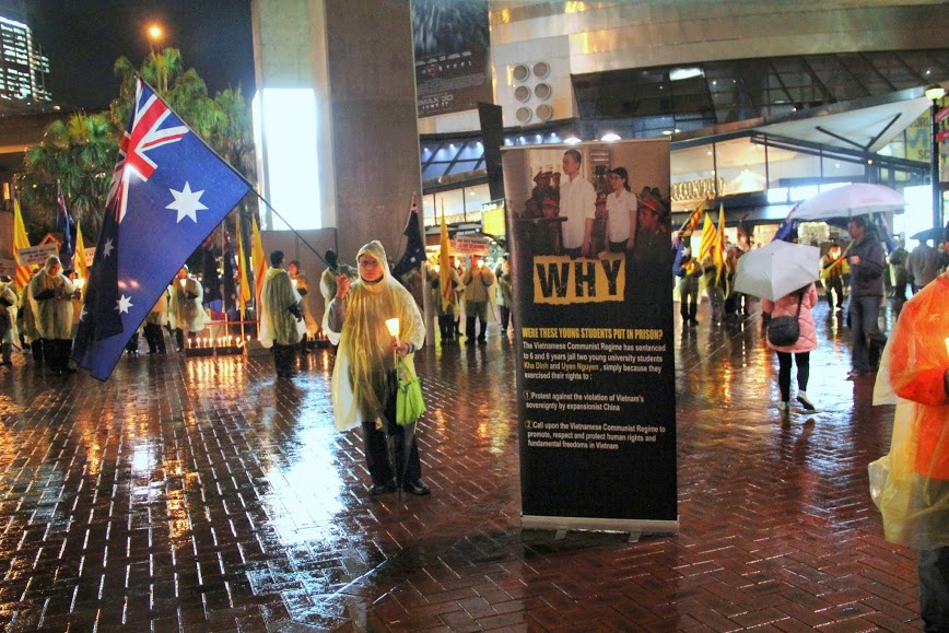 Sau nghi lễ chào cờ Úc Việt là phần phát biểu bằng Anh ngữ của ban tổ chức và các bạn trẻ về lý do của cuộc biểu tình này. Truyền đơn bằng tiếng Anh cũng đã được phân phát để cho người Úc hiểu thêm về tình trạng vi phạm nhân quyền của csVN. Không khí đã được hâm nóng lên với các tham dự viên mặc áo mưa màu vàng và đồng loạt thắp nến. Lửa đấu tranh chống văn hóa vận tại Úc đã lại được tiếp tục thắp lên tại Sydney. Cuộc biểu tình đã chấm dứt lúc 9g tối cùng ngày.